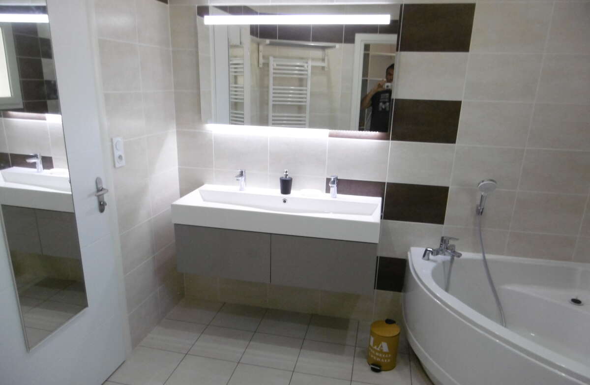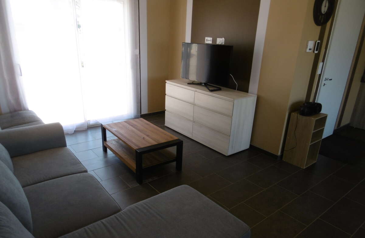 À l'extérieur, une grande terrasse donnant sur le jardin avec une table et 8 chaises, 2 transats et 1 barbecue au gaz.