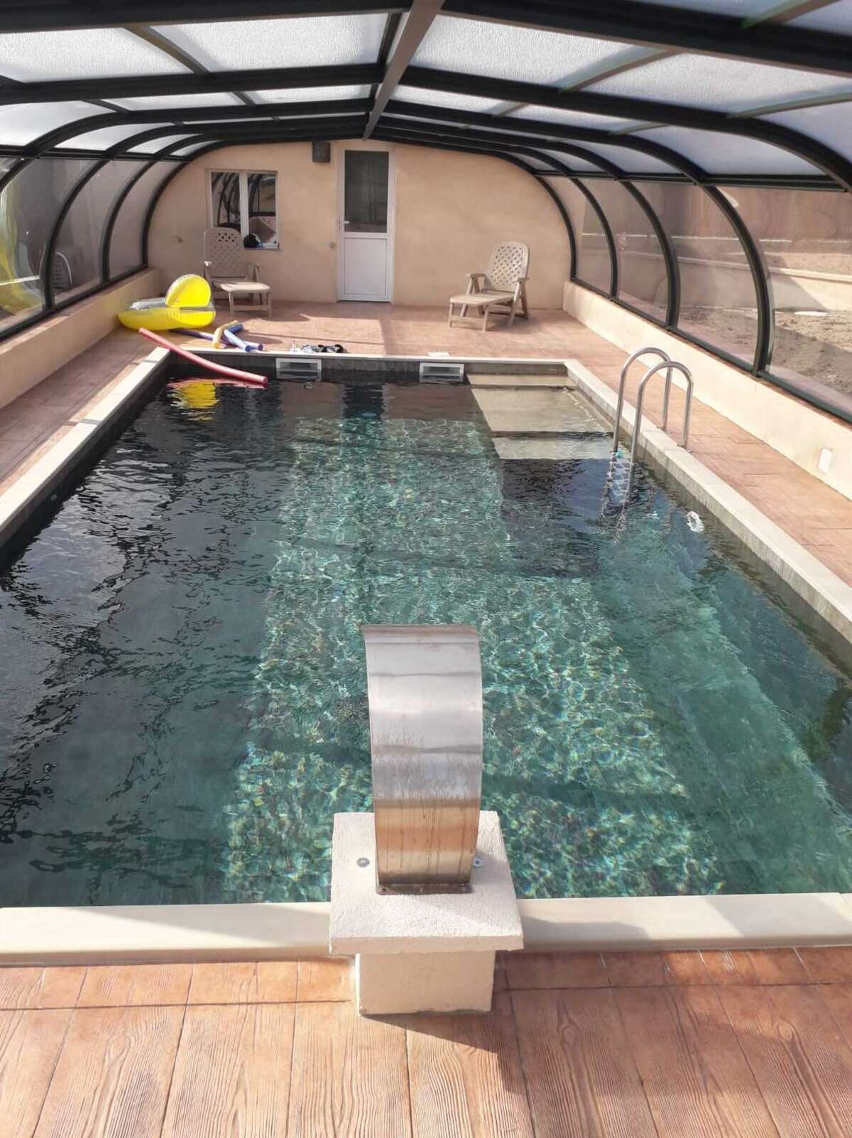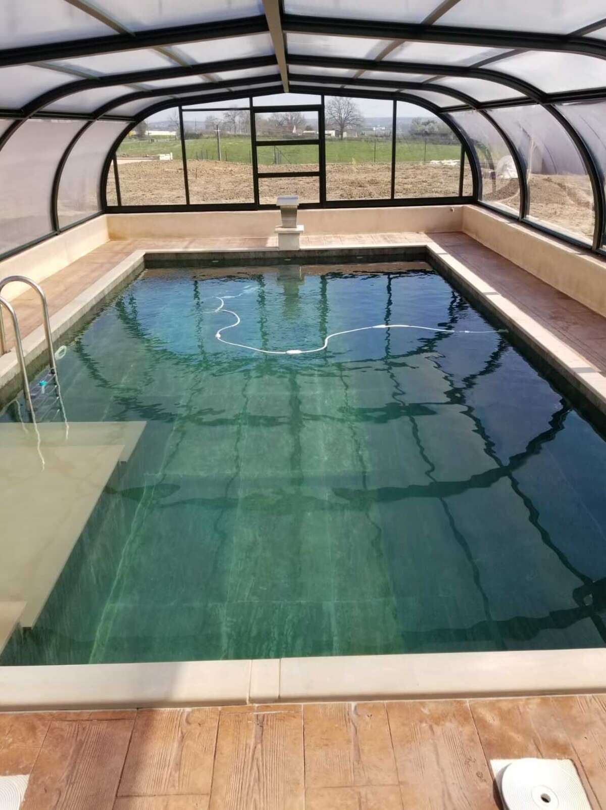 Nous avons également à votre disposition un terrain de boules et une piscine privée, couverte et chauffée, de 30 m2 avec douche, WC et évier.